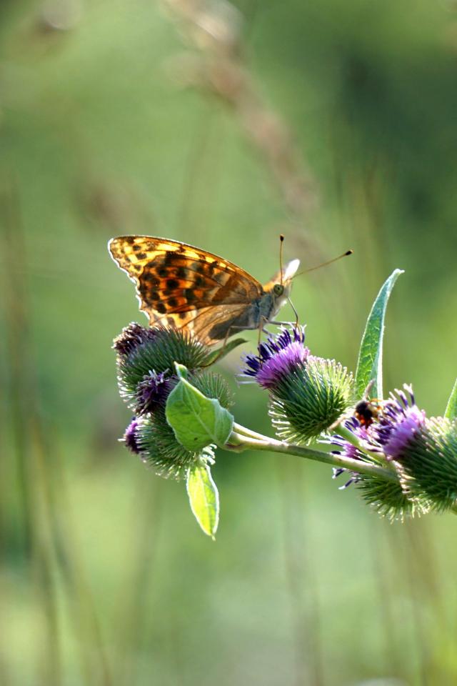 Обои Бабочка сидит на ветке репейника