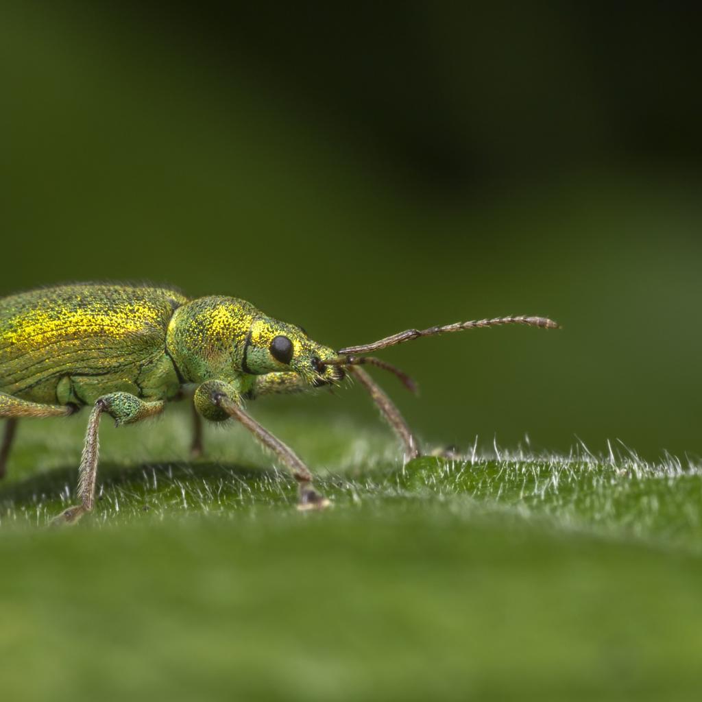 Обои Большой зеленый жук сидит на зеленом листке