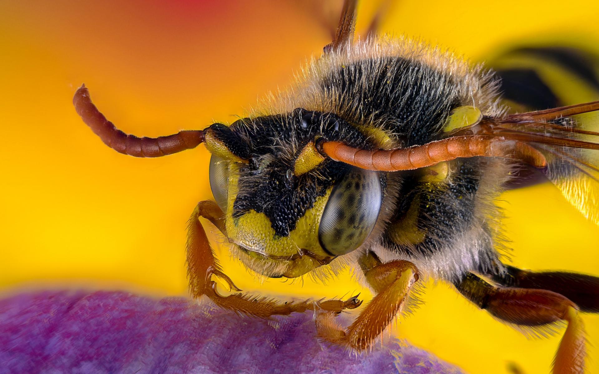 Обои Пчела на цветке крупным планом