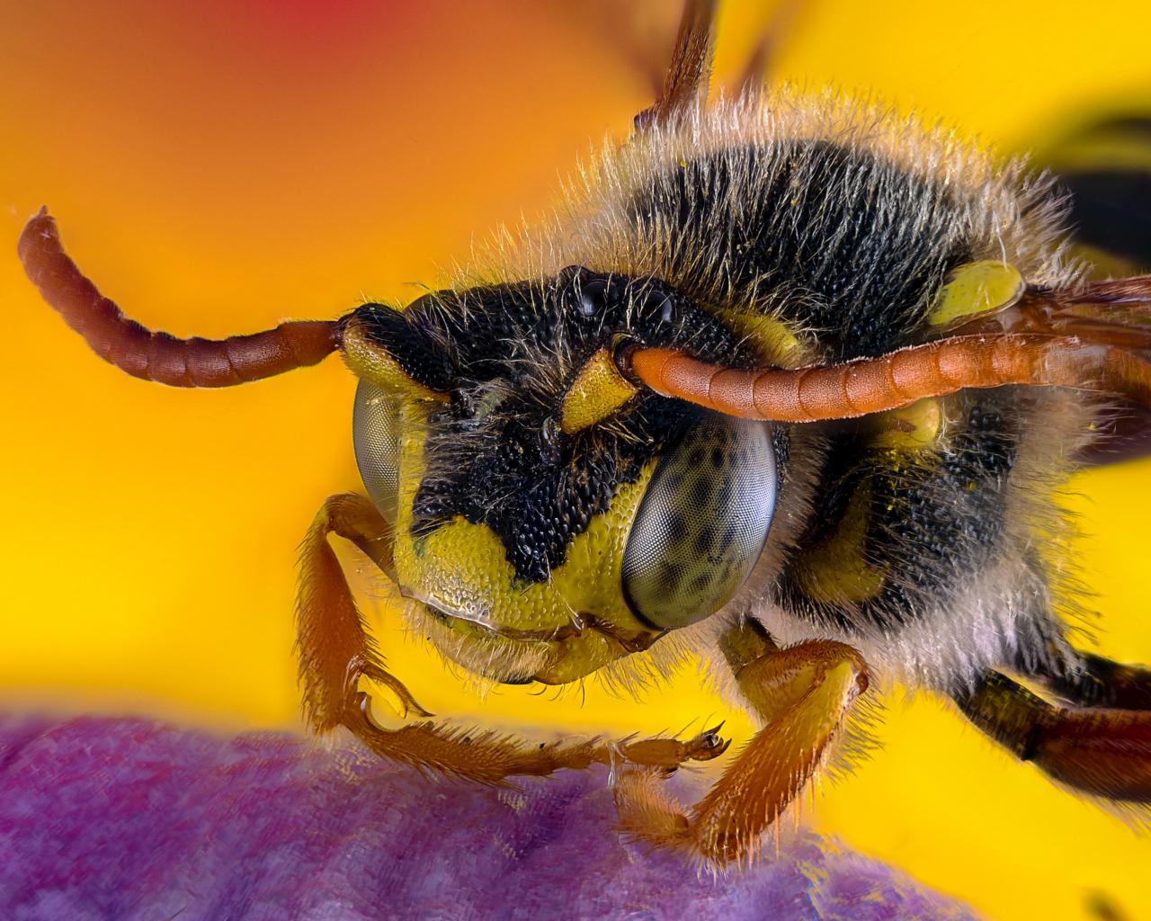 Обои Пчела на цветке крупным планом