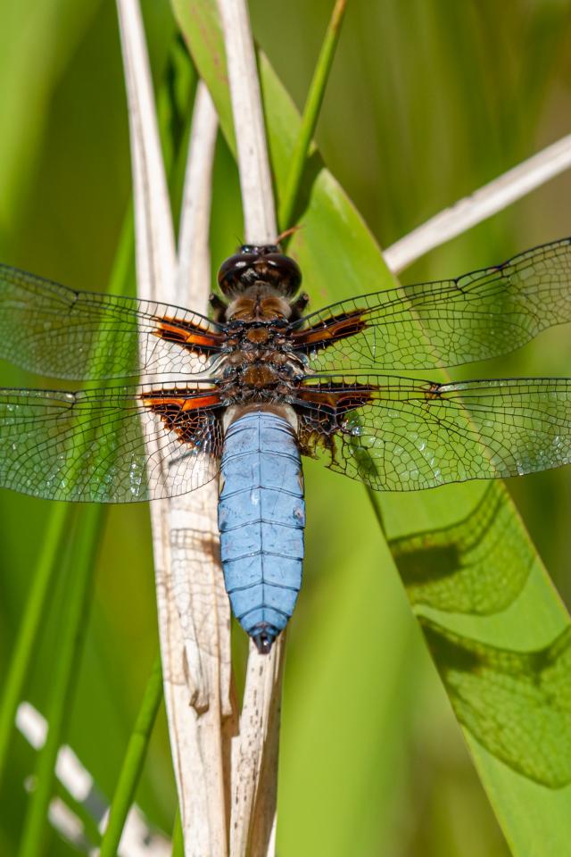 Обои Большая стрекоза с прозрачными крыльями сидит на траве