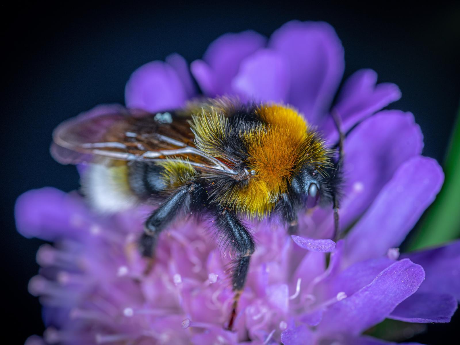 Обои Пчела собирает нектар на фиолетовом цветке