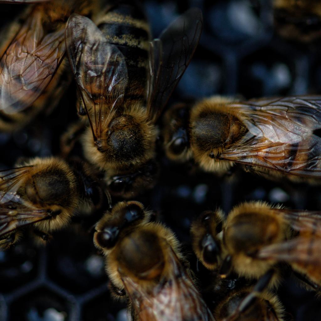 Обои Маленькие пчелы на сотах крупным планом