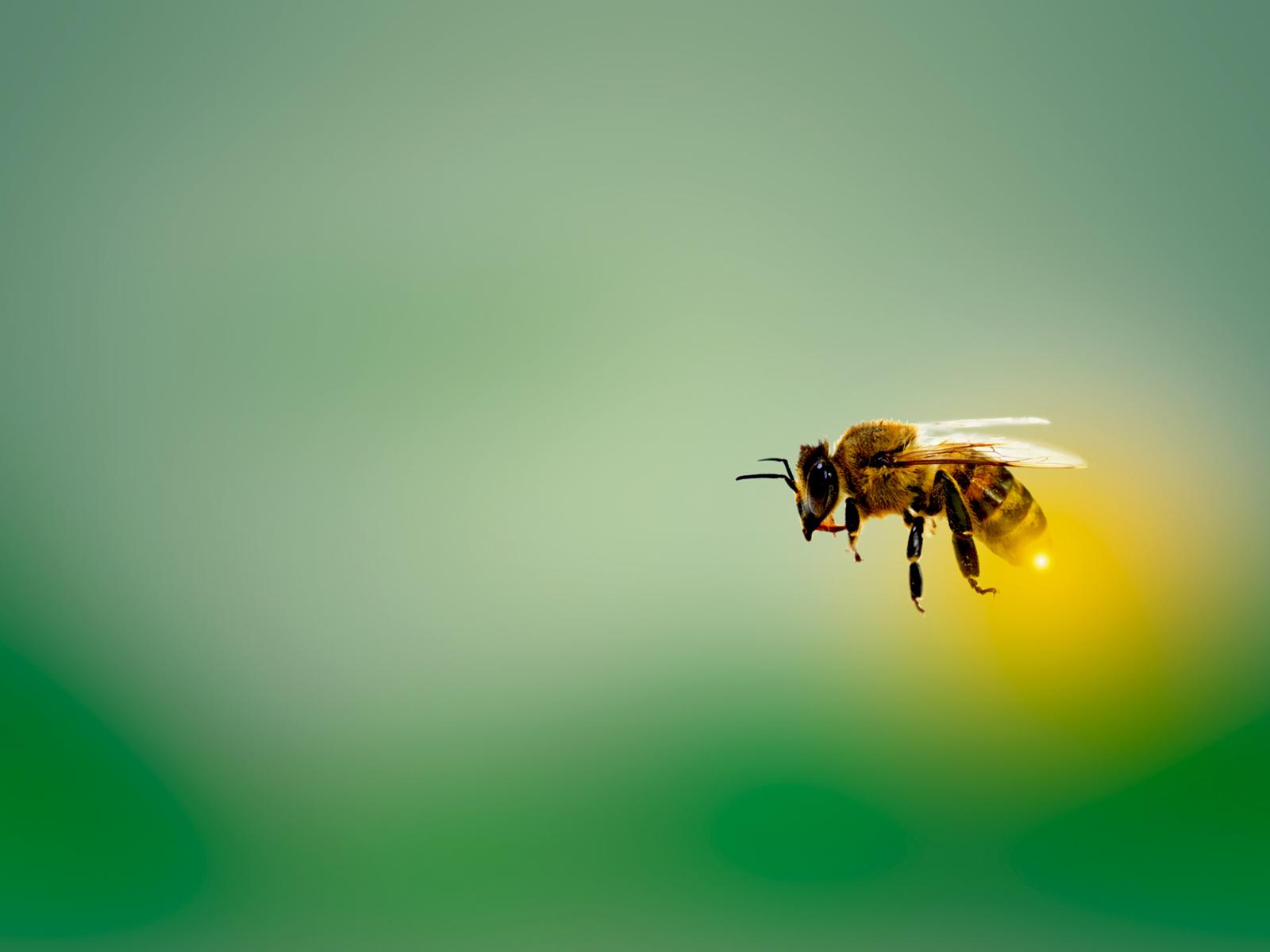 Обои Пчела в летит на зеленом фоне