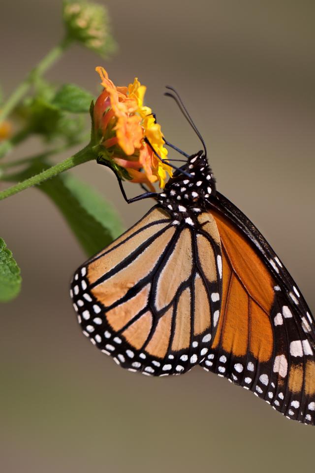 Обои Бабочка сидит на оранжевом цветке крупным планом