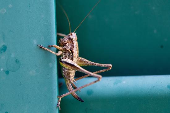 » Обои Большой кузнечик сидит на стене