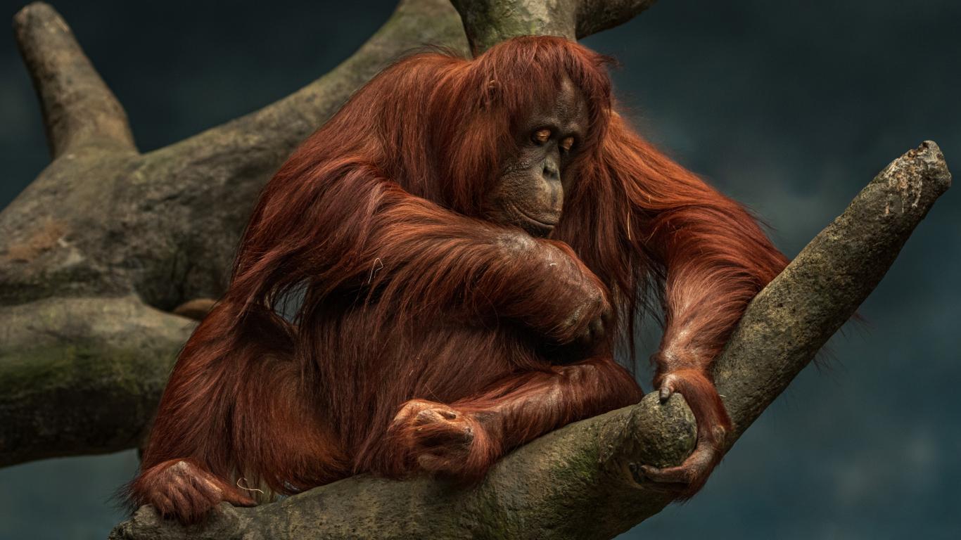 Обои Большой орангутанг сидит на дереве