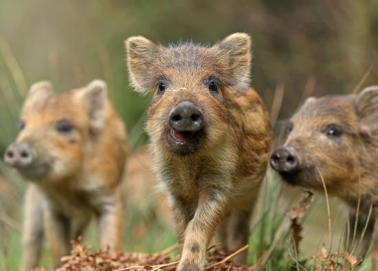 Обои Маленькие дикие кабанчики в лесу