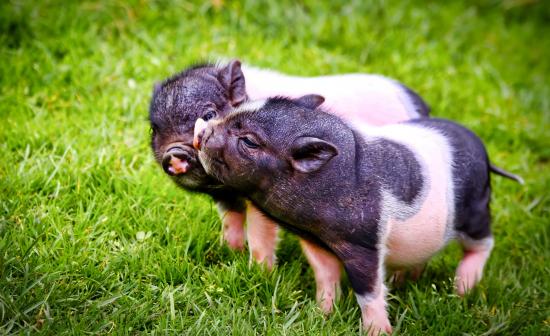 Обои Два милых поросенка на зеленой траве