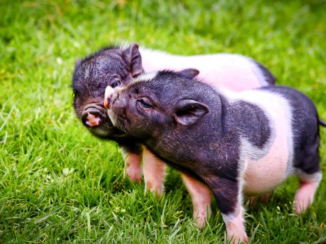 Обои Два милых поросенка на зеленой траве