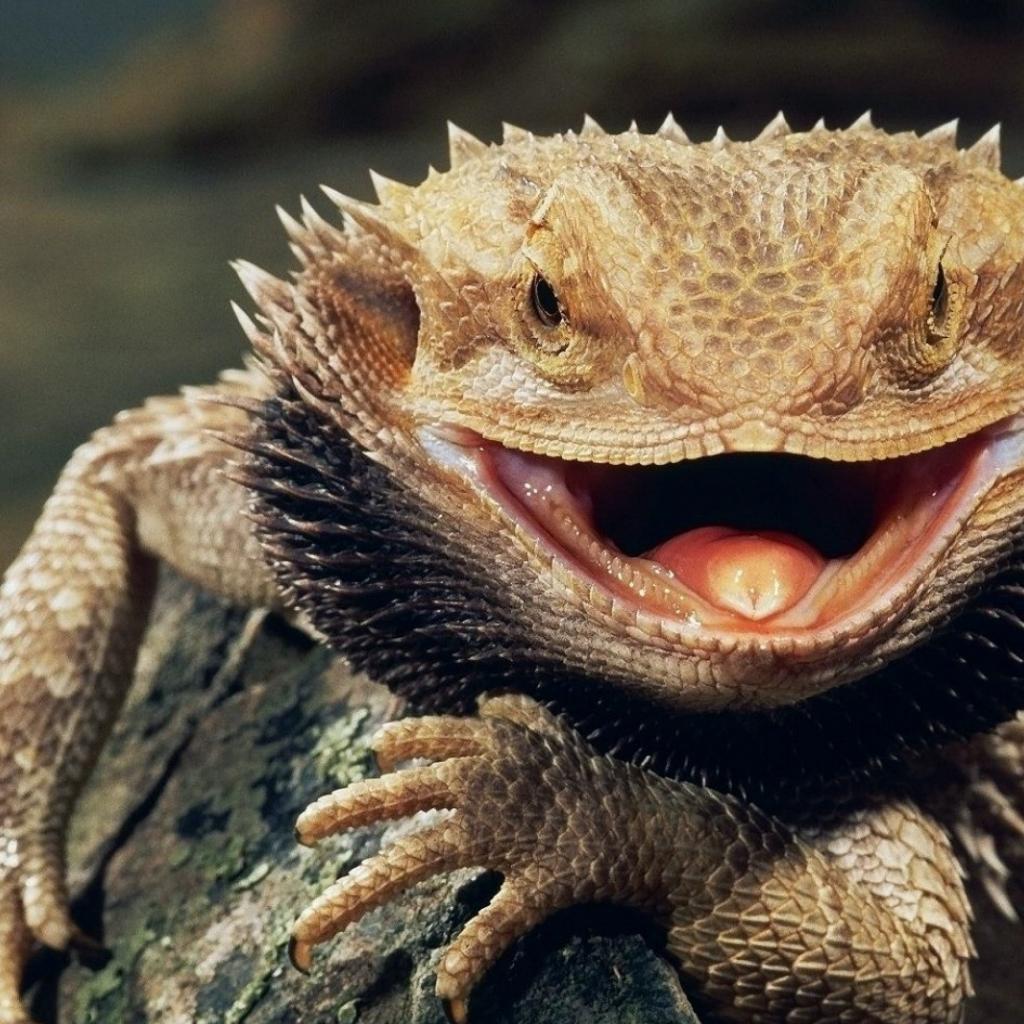Обои Бородатая ящерица с открытым ртом