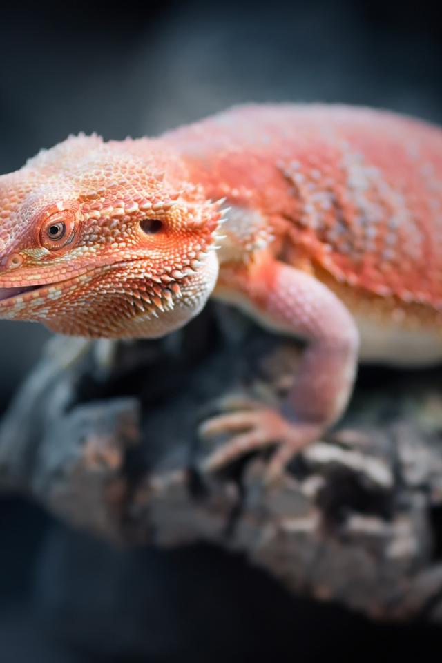 Обои Оранжевая бородатая агама сидит на камне