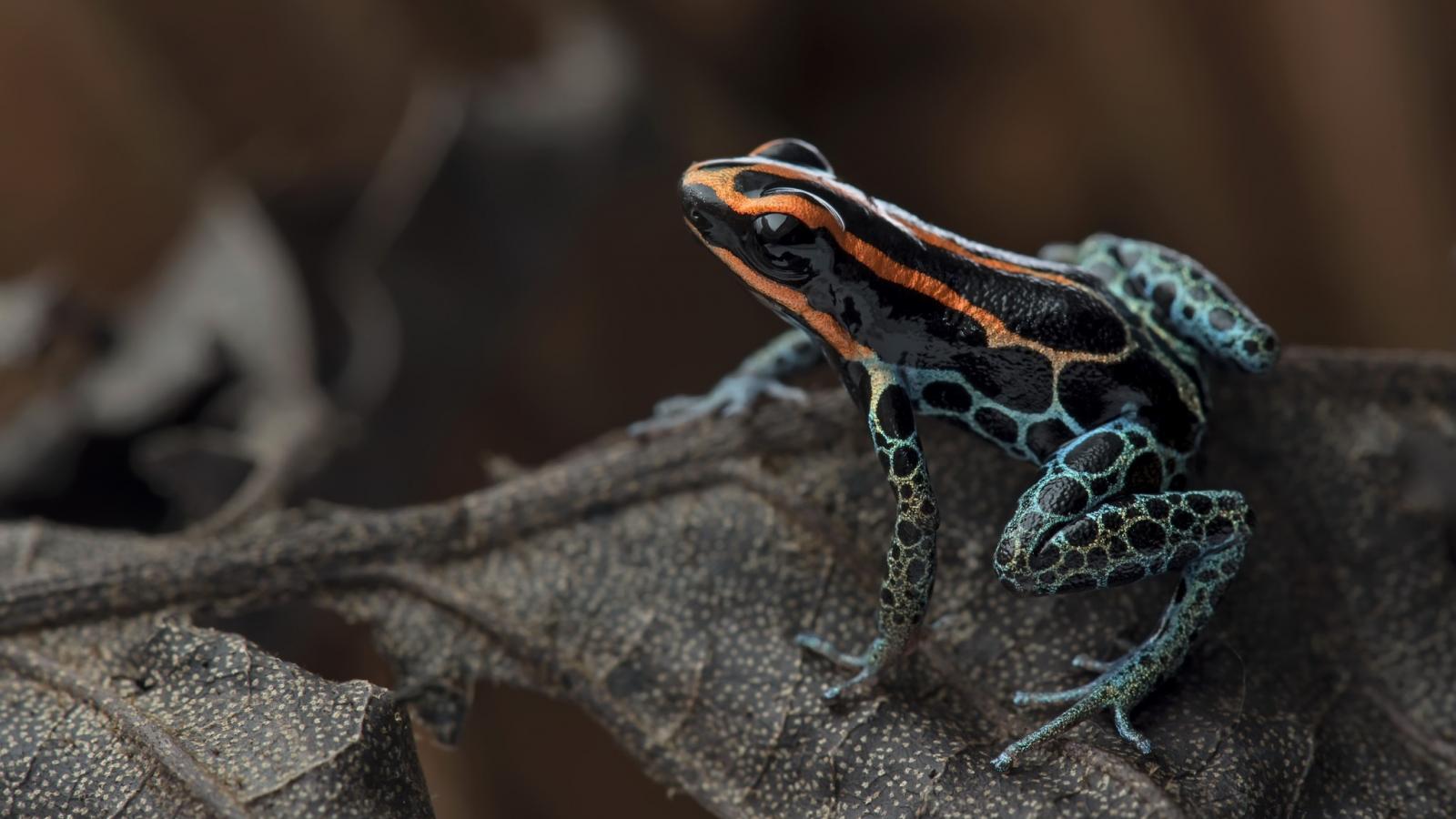 Обои Лягушка сетчатый древолаз сидит на сухом листе