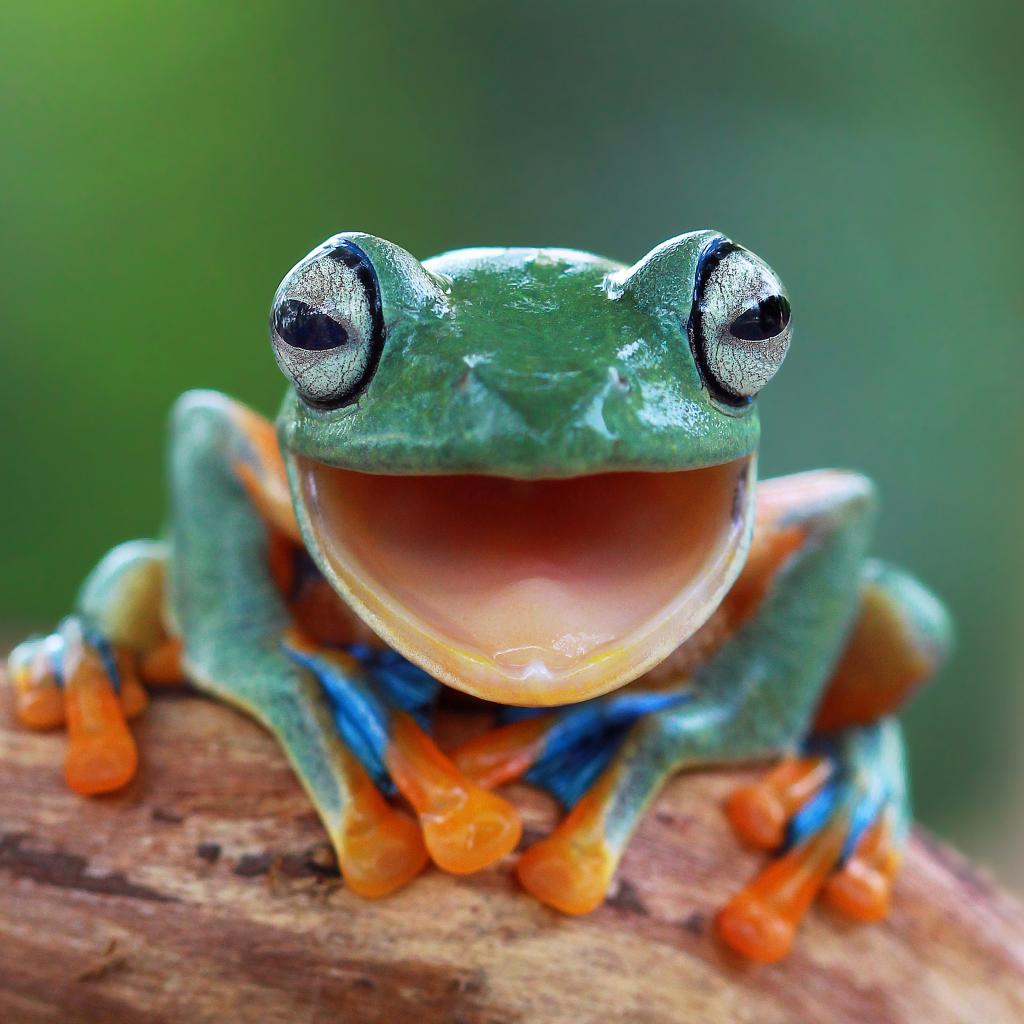 Обои Забавная зеленая лягушка с открытым ртом