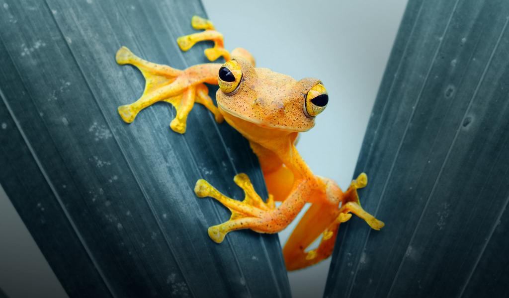 Обои Оранжевая лягушка сидит на листе