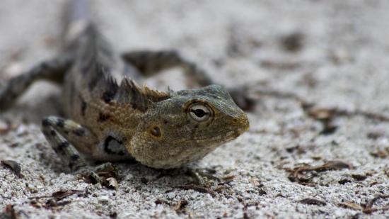 Обои Ящерица с большими глазами на песке