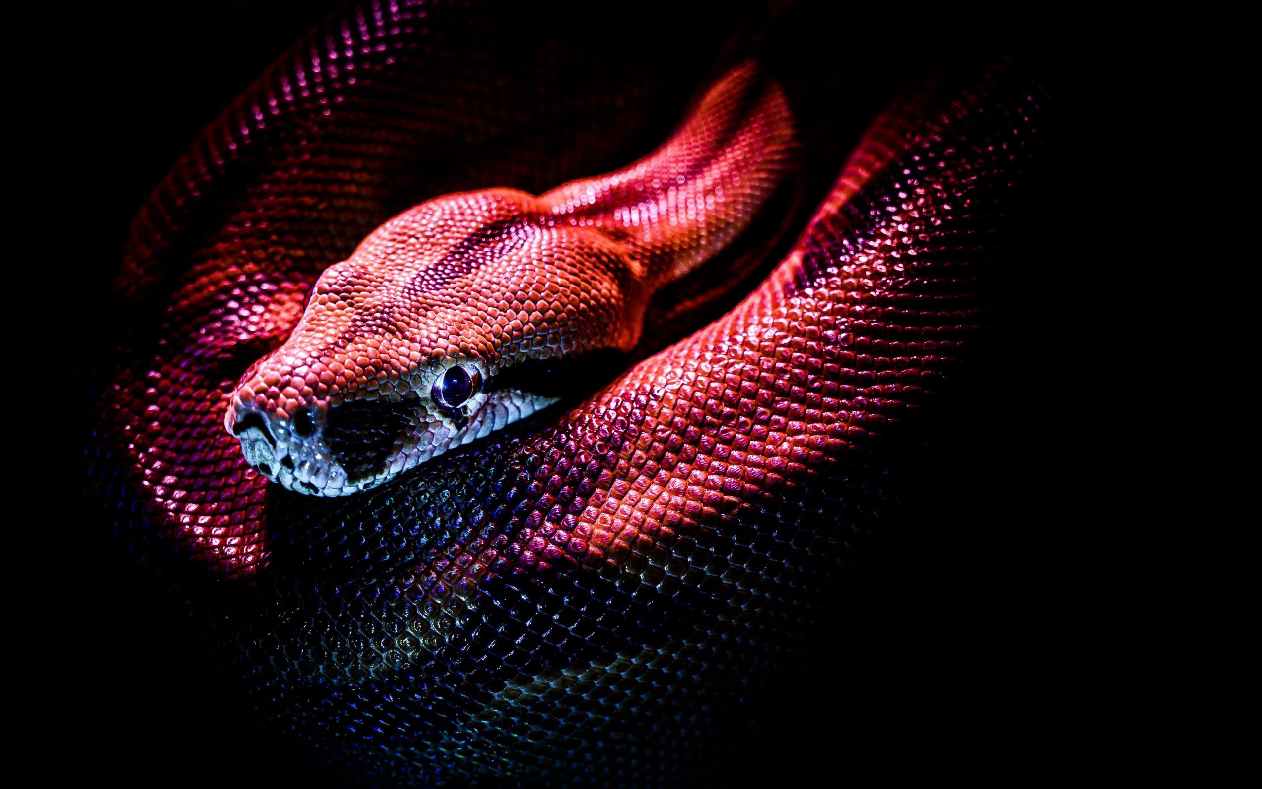 Обои Красная змея на черном фоне