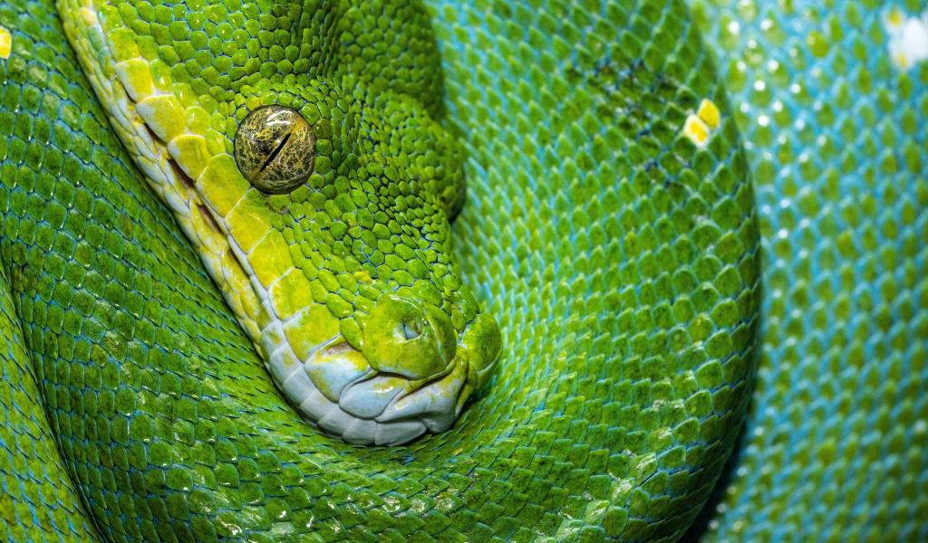 Обои Красивая большая зеленая змея крупным планом