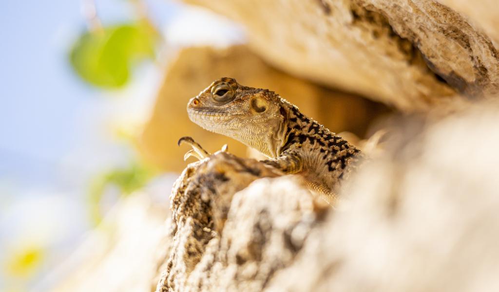Обои Маленькая ящерица прячется в камнях