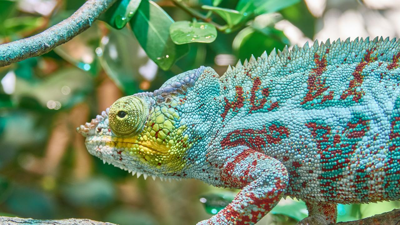 Обои Голубая игуана сидит на ветке дерева