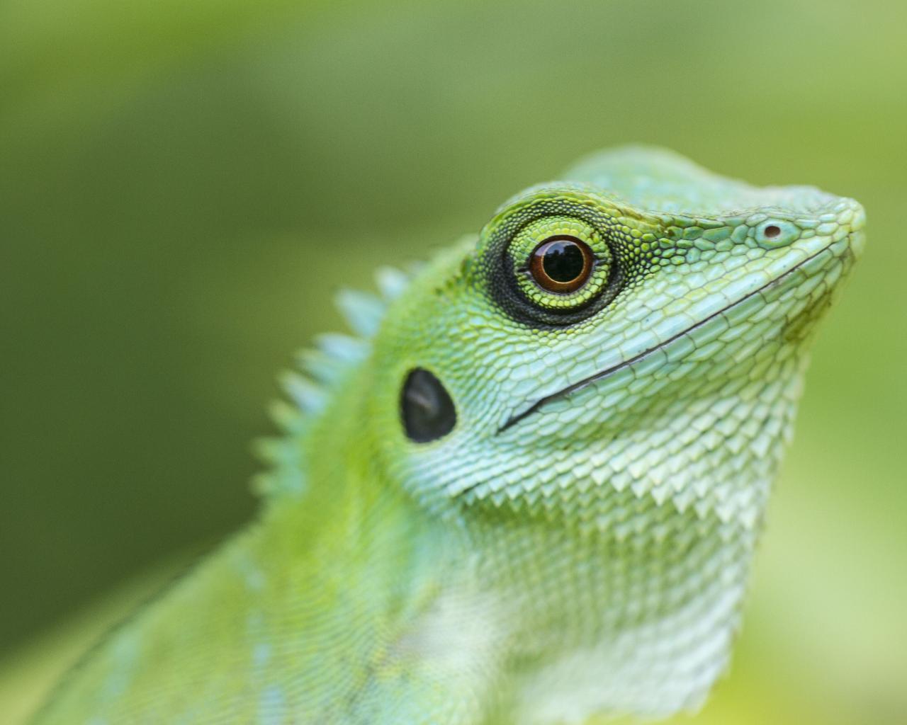 Обои Голова зеленой хохлатой ящерицы крупным планом
