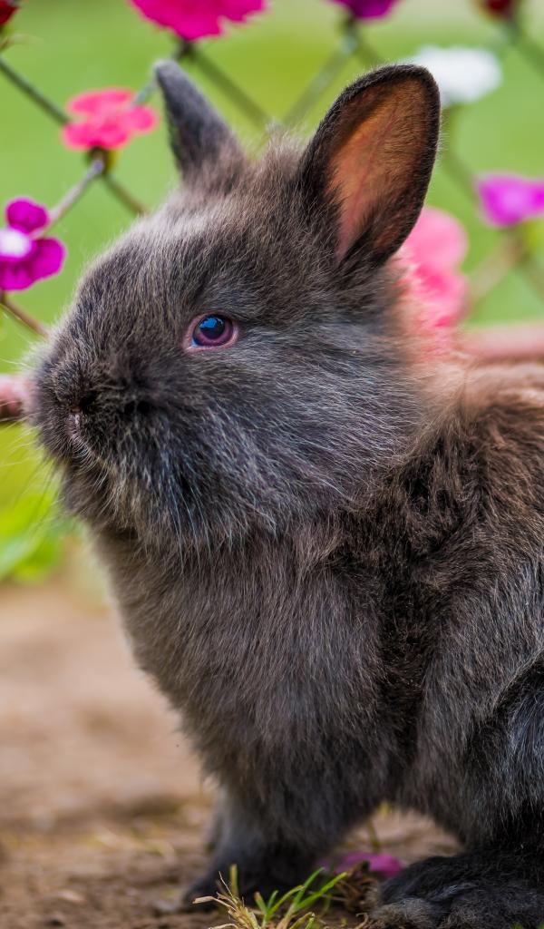 Обои Милый пушистый серый декоративный кролик