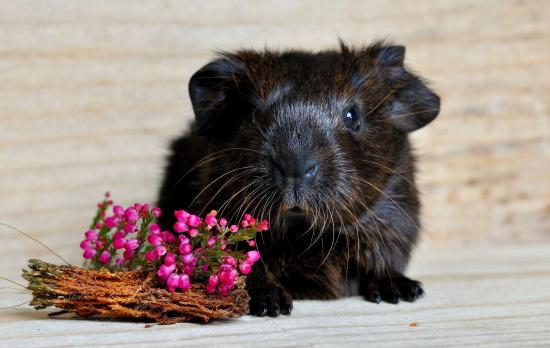 Обои Большая черная морская свинка с розовыми цветами