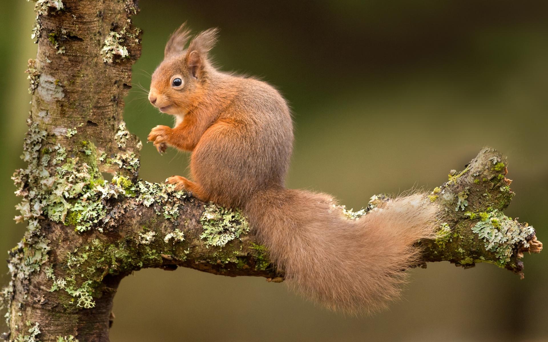 Обои Рыжая белка на ветке дерева