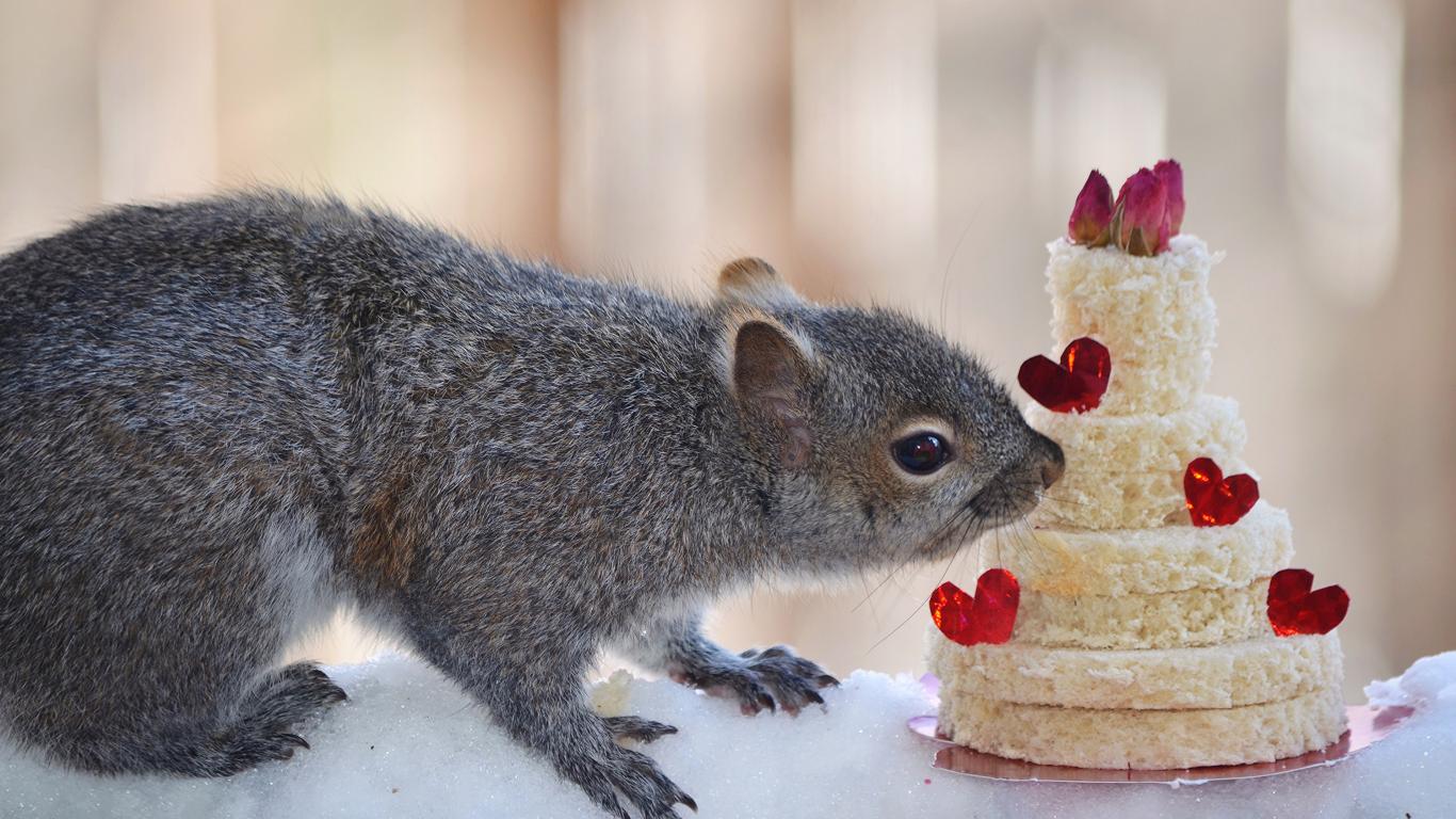 Обои Серой белке подарили торт из хлеба