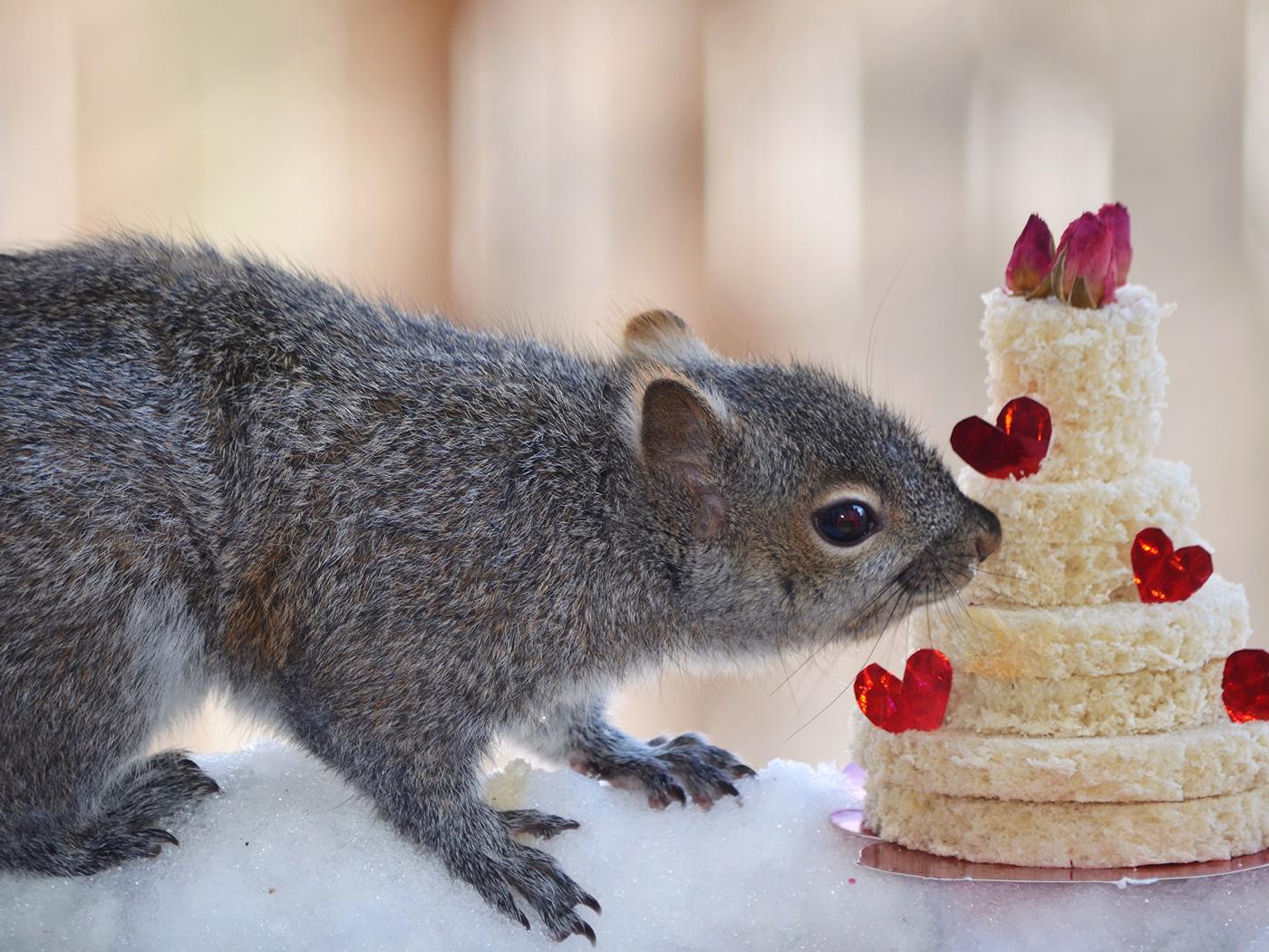 Обои Серой белке подарили торт из хлеба
