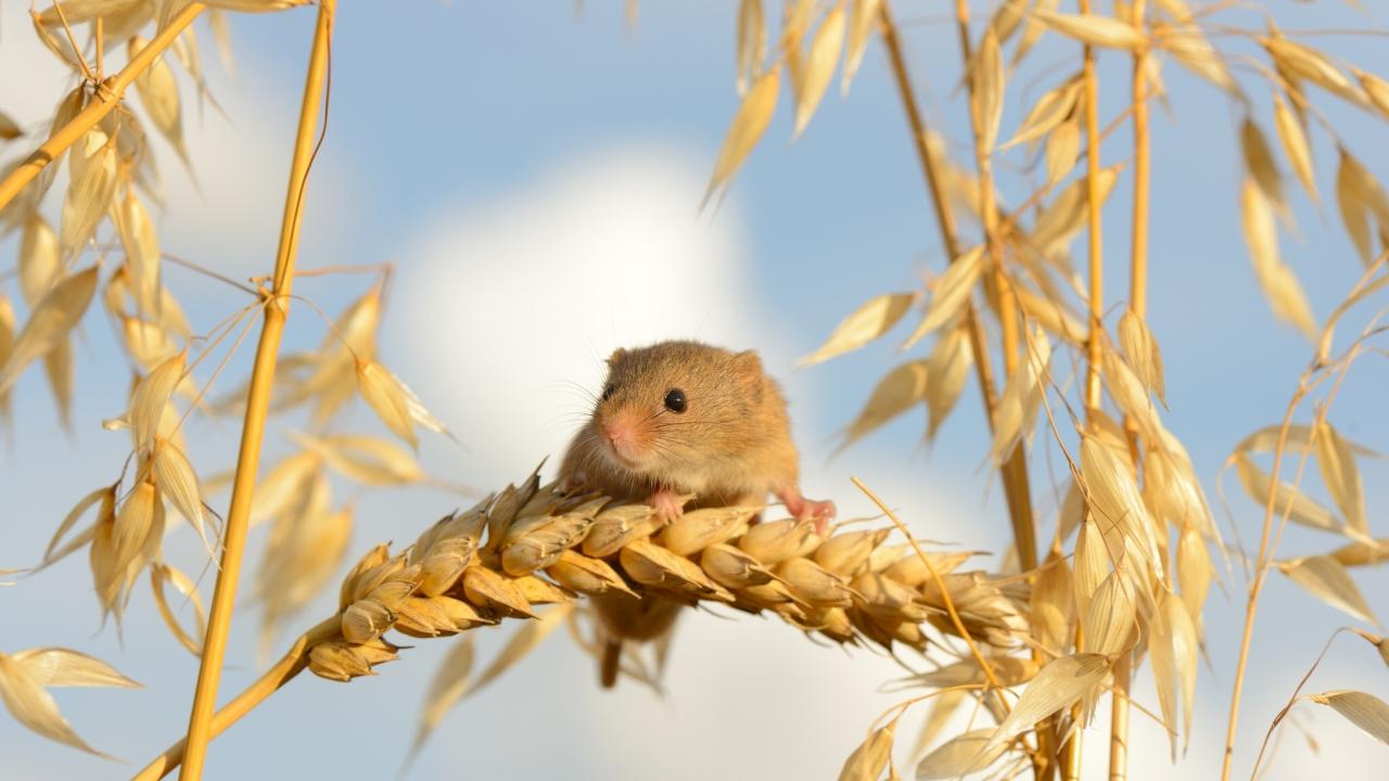 Обои Маленький мышонок сидит на колоске