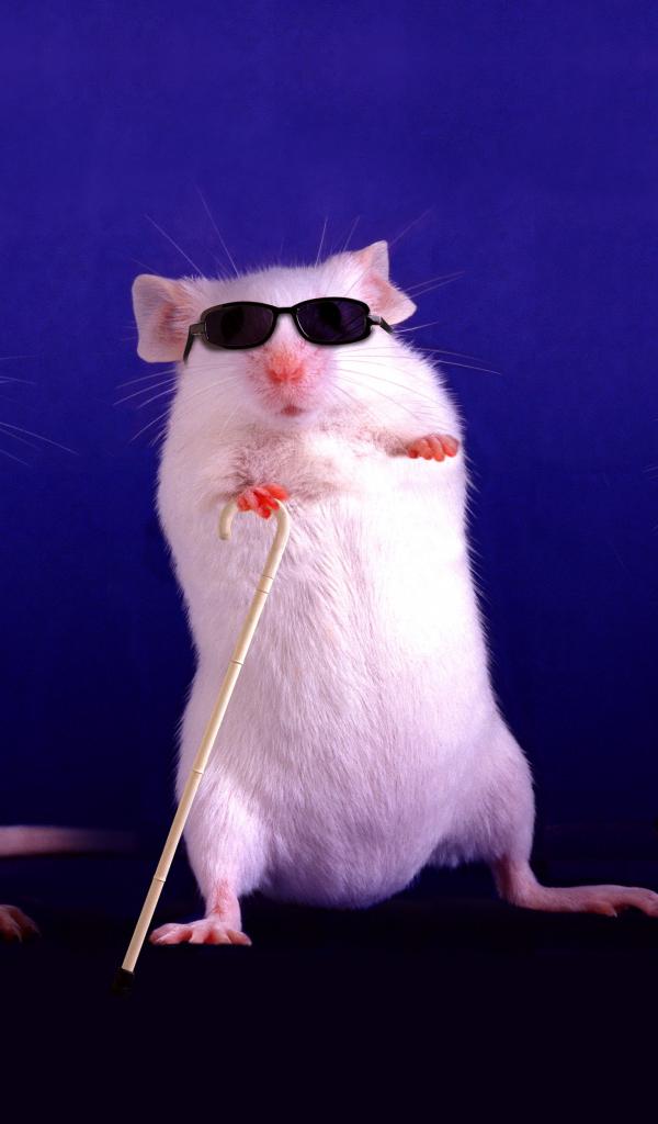Обои Три белых слепых крысы в очках на синем фоне
