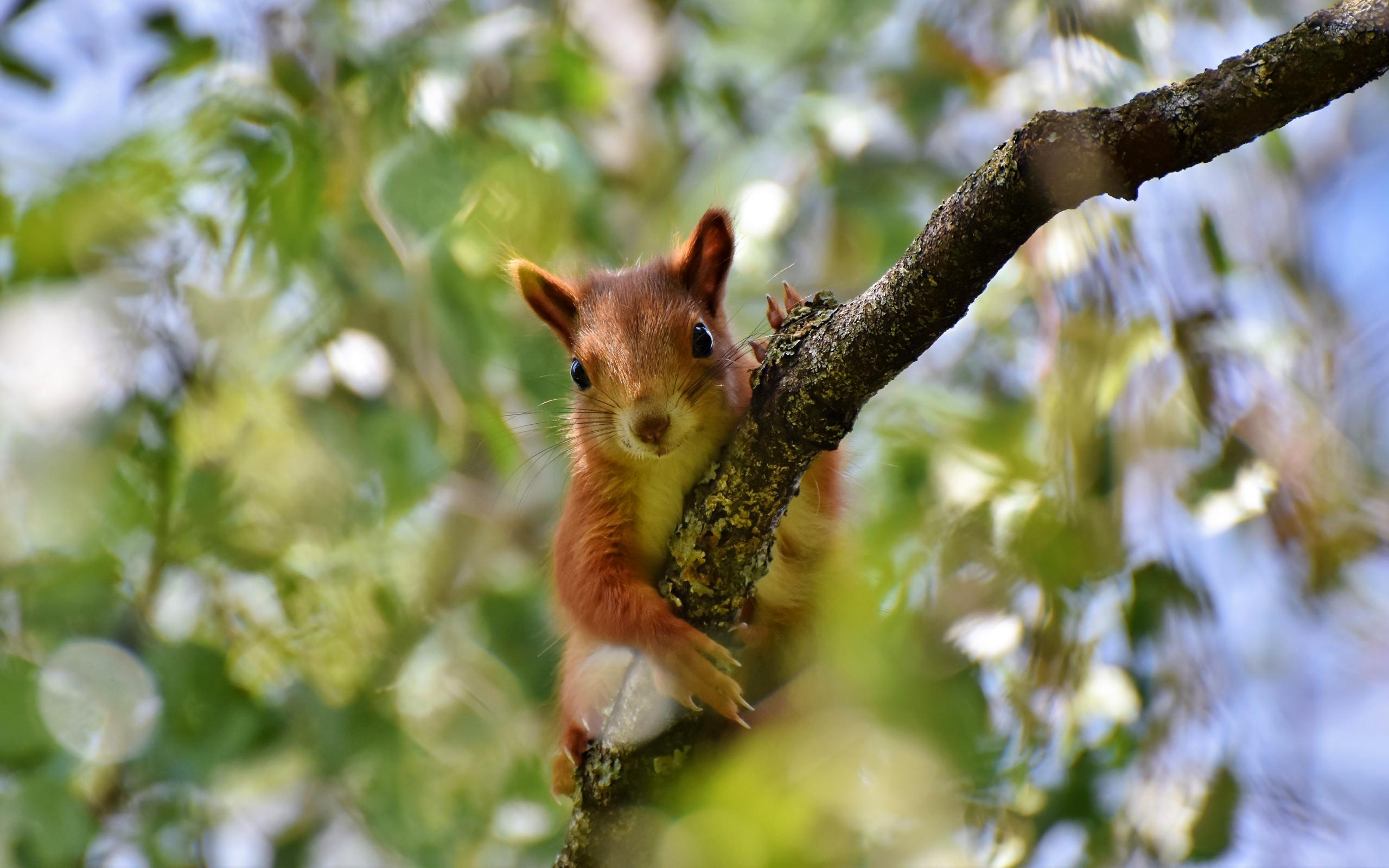 Обои Милая рыжая белка сидит на ветке