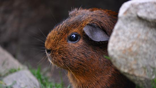 Обои Коричневая морская свинка сидит в камнях