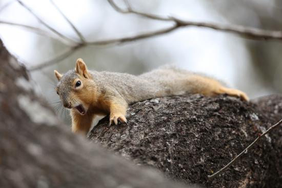 Обои Маленькая белка зевает на дерева