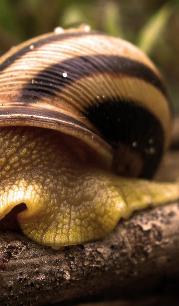Обои Большая улитка в ракушке на ветке
