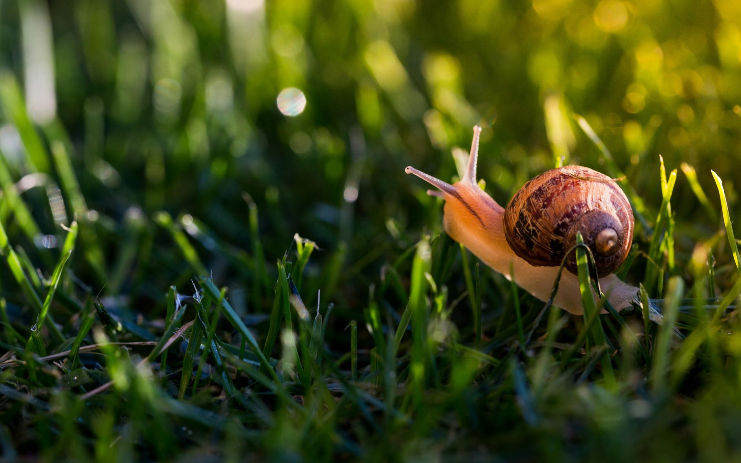 Обои Большая улитка в зеленой траве
