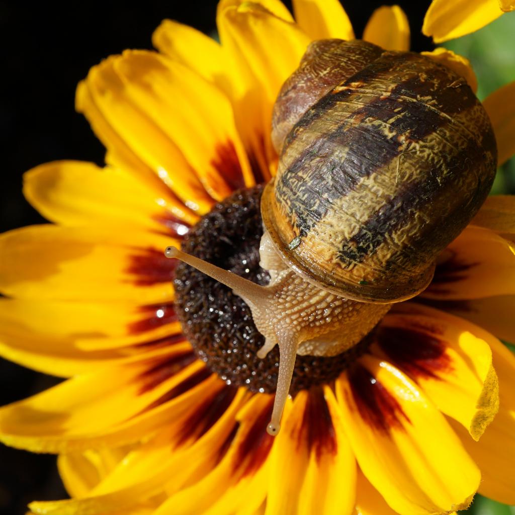 Обои Улитка сидит на желтом цветке