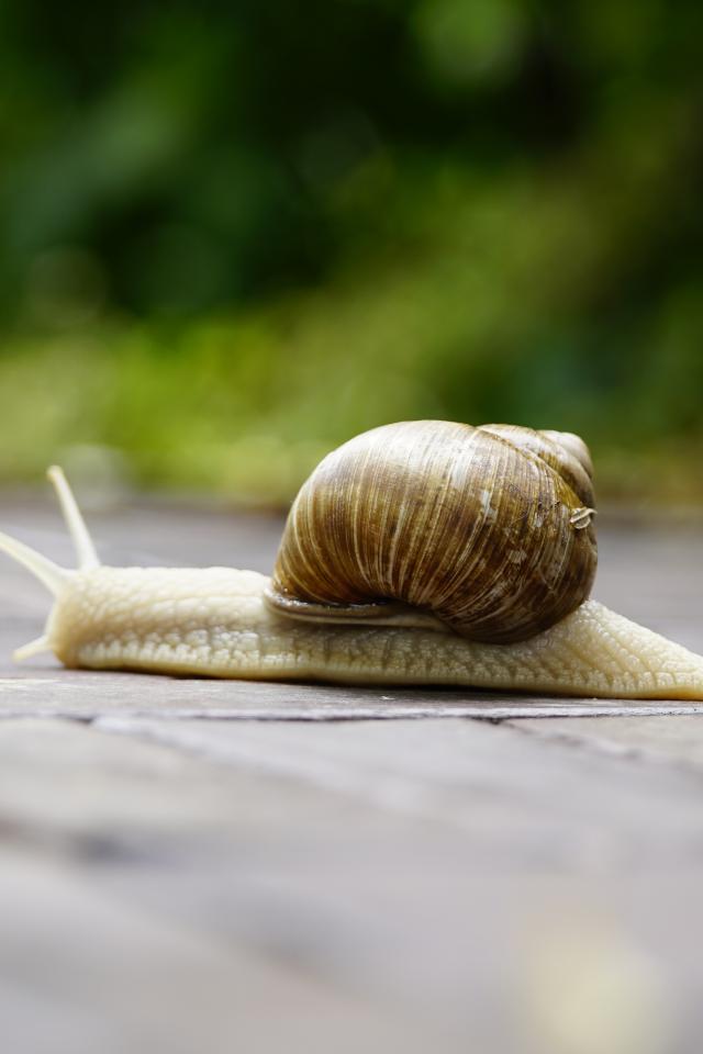 Обои Большая улитка ползет через дорогу