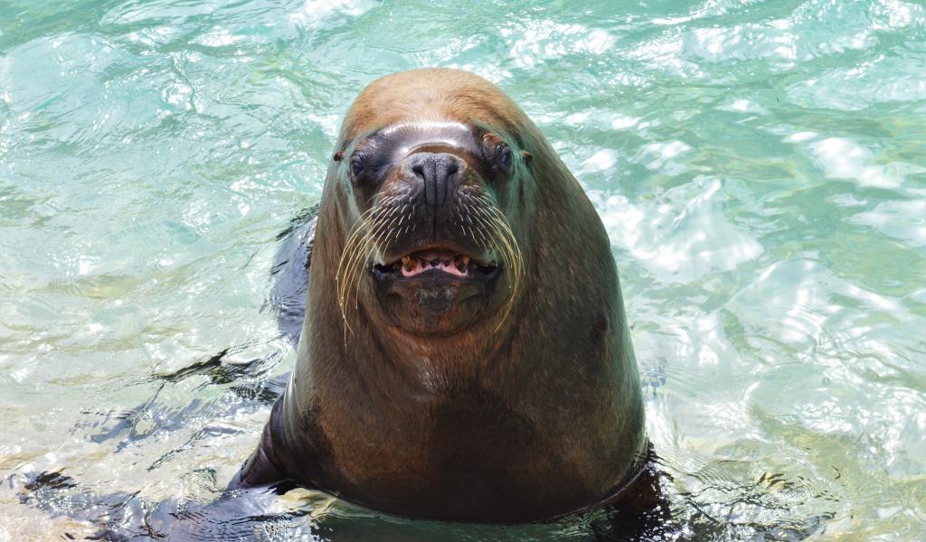 Обои Веселый морской лев в воде