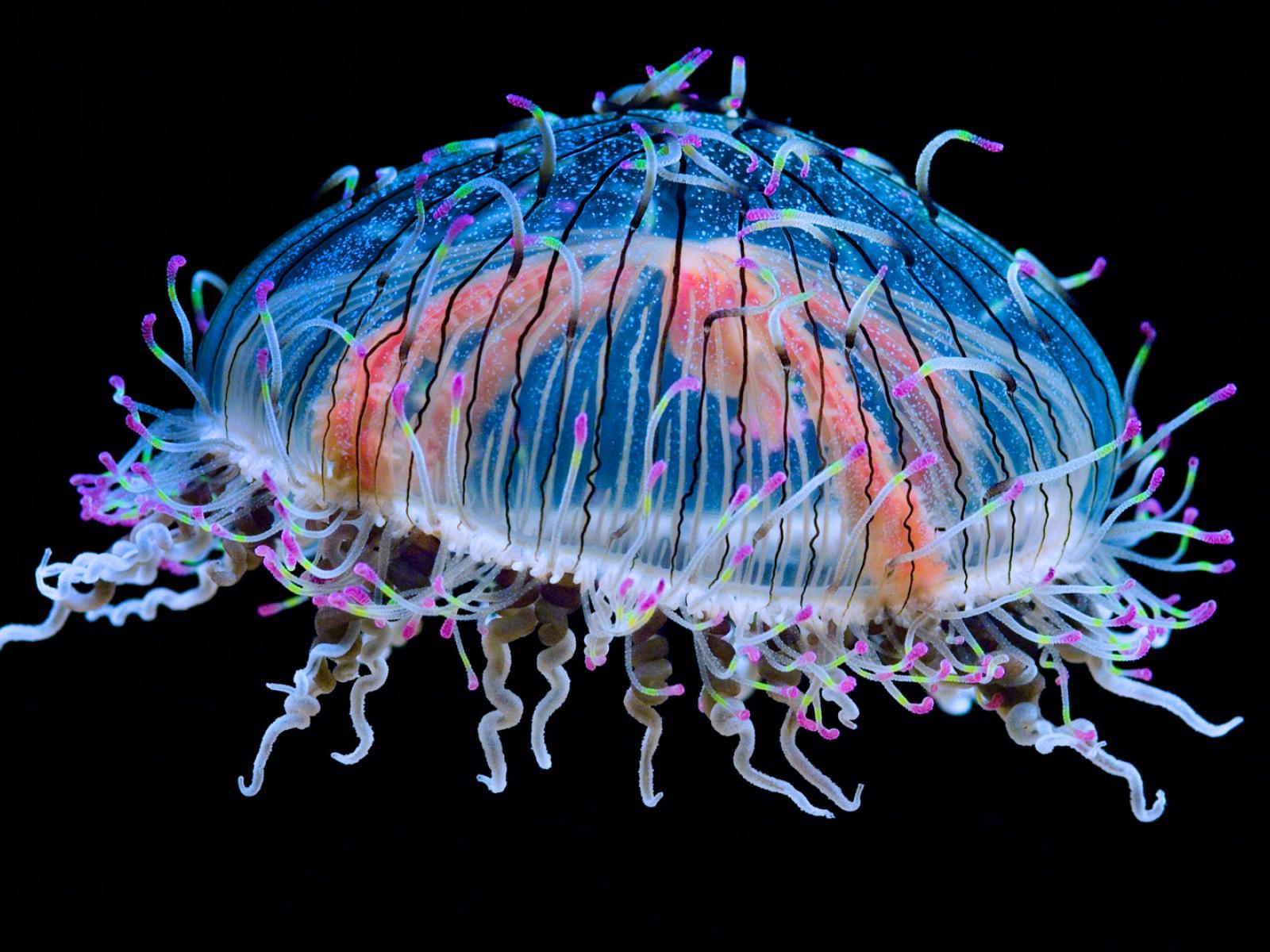 Обои Красивая разноцветная медуза на черном фоне