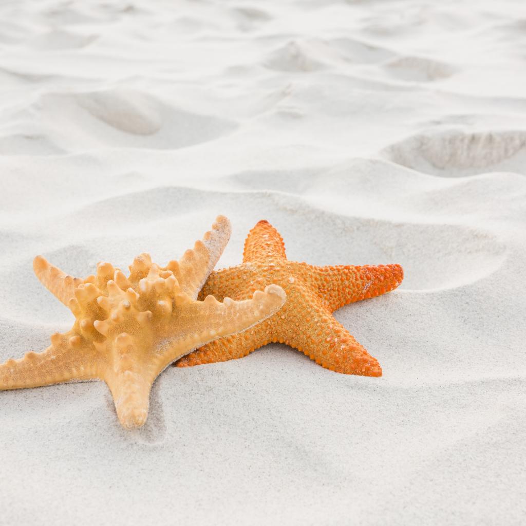 Обои Две морские звезды на белом песке