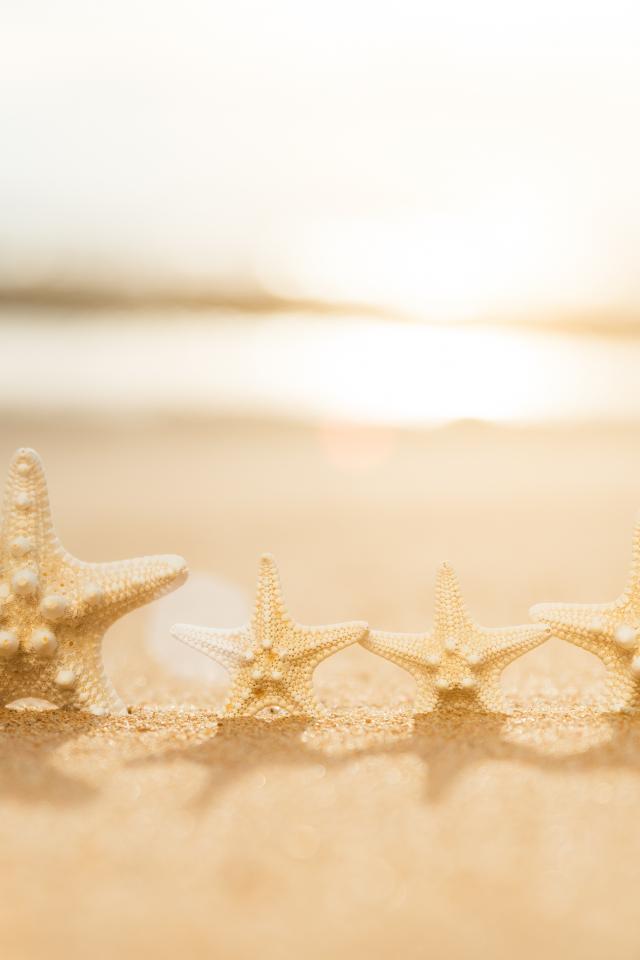 Обои Четыре морские звезды на желтом песке