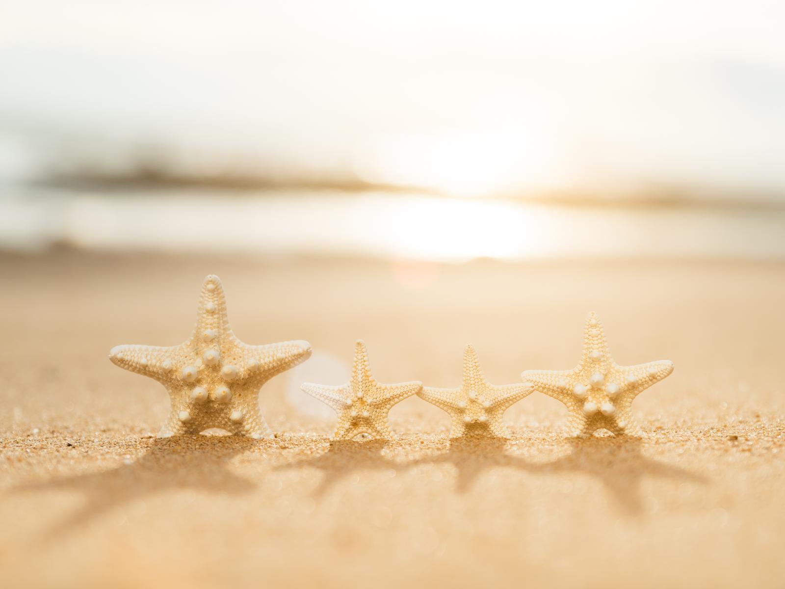 Обои Четыре морские звезды на желтом песке