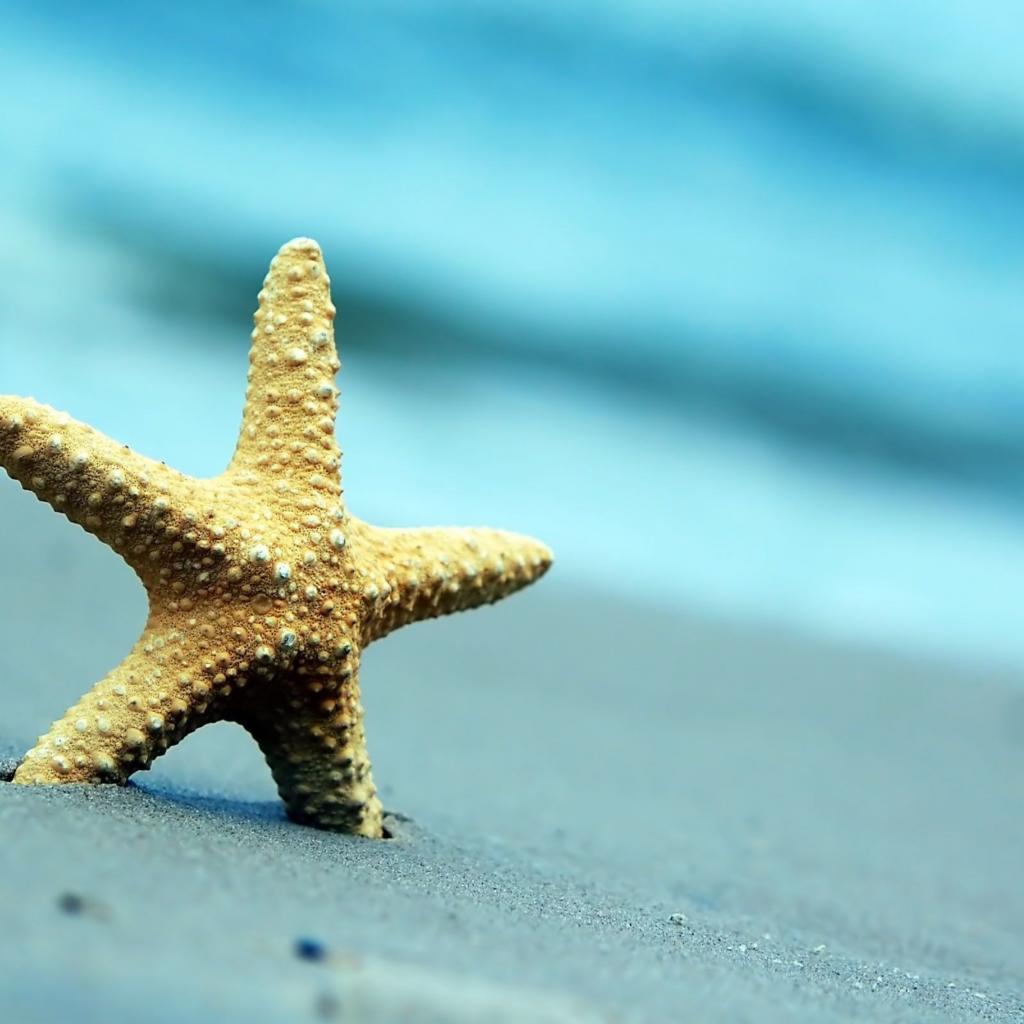Обои Морская звезда на сером морском песке