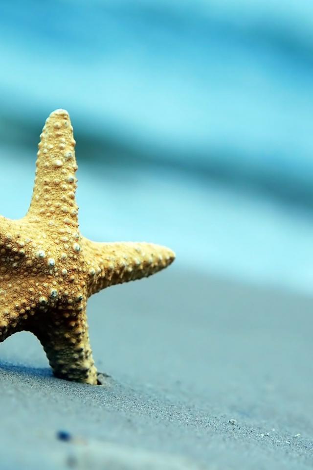 Обои Морская звезда на сером морском песке