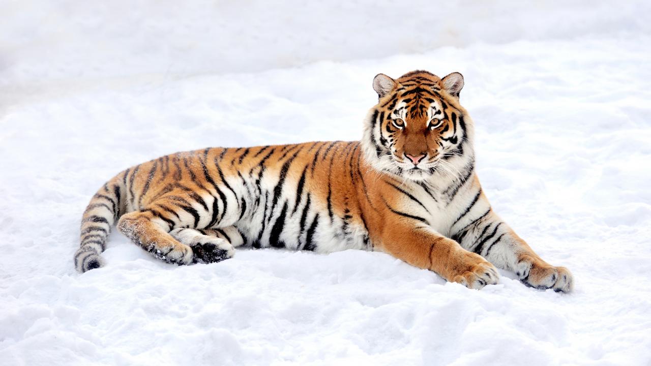 Обои Большой грациозный тигр на снегу