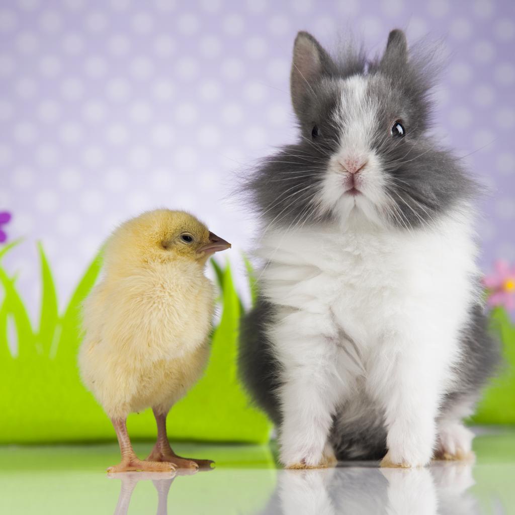 Обои Милый декоративный кролик с цыпленком