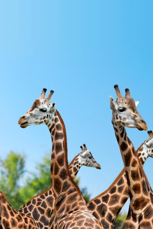 Обои Большие жирафы на фоне голубого неба