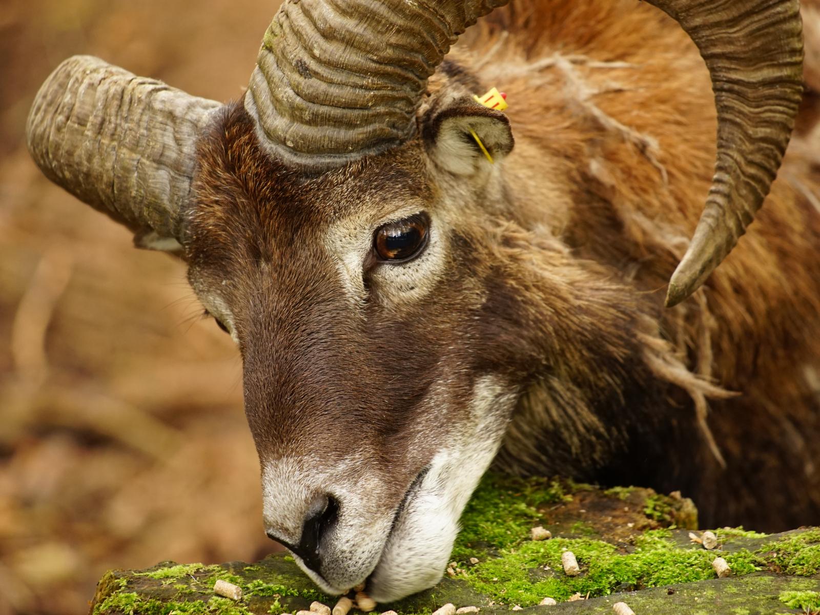 Обои Большой муфлон ест корм